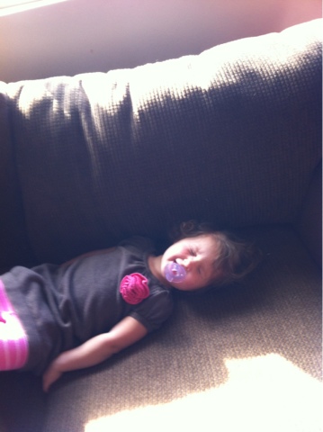 Her response- "I'm sleeping" she then promptly climbed on to the couch and shut her eyes:) too cute!!!